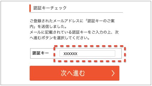 メールを終了しブラウザに戻る。画面に「認証キー」を入力し「次へ進む」