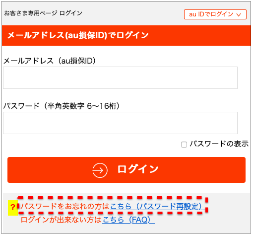「パスワードをお忘れの方はこちら(パスワード再設定)」を押す