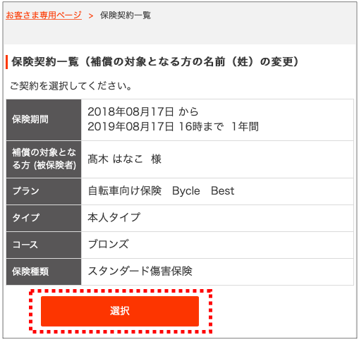 被保険者(補償の対象となる方)の姓が結婚等で改姓した場合、変更の手続きはどうすればよいですか?