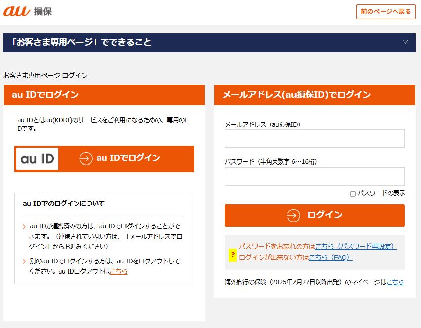 ご契約時にご登録いただいたメールアドレスとパスワード、またはau IDを連携済みの方は、au IDでログインすることができます。(連携されていない方は、「メールアドレスでログイン」からお進みください)