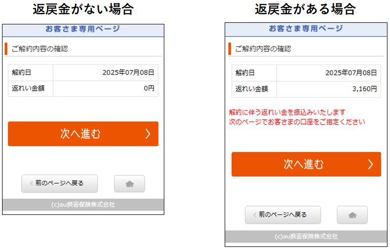 ご解約手続きを途中まですすめていただくことでお手続き時点で解約返戻金をご確認いただくことができます。